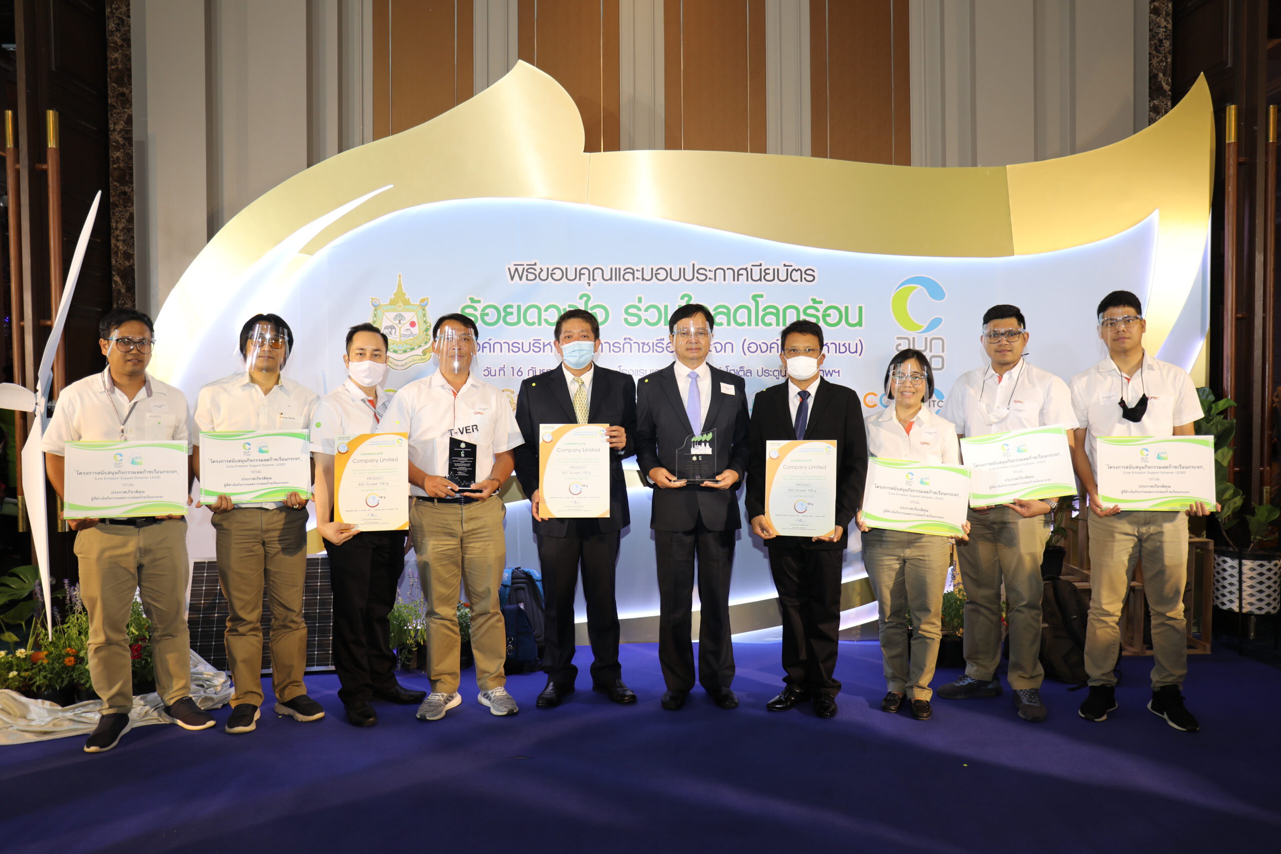 โดยปีนี้ GPSC รับ 3 รางวัลจากโครงการต่างๆ ได้แก่ (1) รางวัลประเมินและจัดระดับธุรกิจคาร์บอนต่ำและยั่งยืน (Low Carbon and Sustainable Business Index: LCSi) องค์กรที่มีผลประเมินยอดเยี่ยมประจำปี 2563 (2) รางวัลการลดก๊าซเรือนกระจกภาคสมัครใจตามมาตรฐานของประเทศไทย (Thailand Voluntary Emission Reduction Program: T-VER) จากศูนย์ผลิตสาธารณูปการแห่งที่ 4 เฟส 1 (3) รางวัลกิจกรรมสนับสนุนการลดก๊าซเรือนกระจก (Low Emission Support Scheme) จากศูนย์ผลิตสาธารณูปการแห่งที่ 1 (CUP 1) ศูนย์ผลิตสาธารณูปการแห่งที่ 2 (CUP 2) ศูนย์ผลิตสาธารณูปการแห่งที่ 3 (CUP 3) โรงไฟฟ้าศรีราชา (SRC) และโครงการ Zero Waste Village นอกจากนี้ บริษัท โกลว์ พลังงาน จำกัด (มหาชน) หรือ GLOW บริษัทในกลุ่ม GPSC โดยโรงไฟฟ้าโกลว์ เอสพีพี 2, โรงไฟฟ้าโกลว์ เอสพีพี 3, โรงไฟฟ้าโกลว์ พลังงาน ระยะที่ 4, โรงไฟฟ้าโกลว์ พลังงาน ระยะที่ 5, โรงไฟฟ้าโกลว์ พลังงาน ซีเอฟบี 3 และโรงไฟฟ้าเก็คโค่-วัน ได้รับรางวัลคาร์บอนฟรุตพริ้นองค์กร (Carbon Footprint Organization: CFO) โรงไฟฟ้าโกลว์ พลังงาน ระยะที่ 1, โรงไฟฟ้าโกลว์ พลังงาน ระยะที่ 2 ได้รับรางวัลคาร์บอนฟรุตพริ้นผลิตภัณฑ์ (Carbon Footprint Product: CFP) และฉลากลดคาร์บอนฟุตพริ้นท์ (Carbon Footprint Reduction: CFR) ณ ห้องเมย์แฟร์แกรนด์บอลรูม ชั้น 11 โรงแรมเดอะเบอร์เคลีย์ ประตูน้ำ กรุงเทพฯ