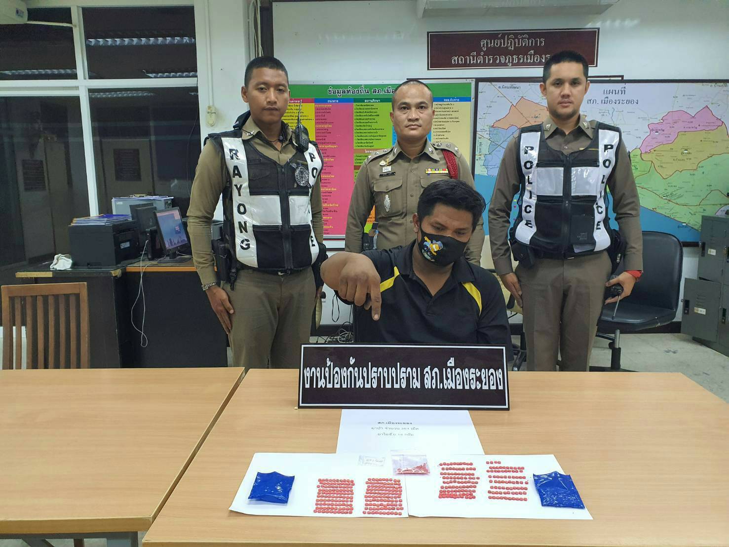 วันที่ 4 พ.ย.เวลา 04.00 น.ร.ต.อ.สุชาติ ดุสดี รองสวป.สภ.เมืองระยอง ออกตรวจเขตพื้นที่มาถึงบริเวณซอยข้างร้านสมบูรณ์กิจการยาง ชุมชนหนองจอก ม.5 ต.เชิงเนิน อ.เมือง จ.ระยอง พบรถยนต์ตู้ยี่ห้อโตโยต้า รุ่นคอมมูเตอร์สีบอร์นเทาหมายเลขทะเบียน นข – 4064 ระยอง ขับผ่านมาลักษณะท่าทางมีพิรุธจึงได้เรียกให้จอด มีนายพัฒนะ (ปลั๊ก) หอมจันทร์ อายุ 30 ปี บ้านเลขที่ 2/2 ม.2 ต.เชิงเนิน อ.เมือง จ.ระยอง แสดงตนเป็นคนขับ
