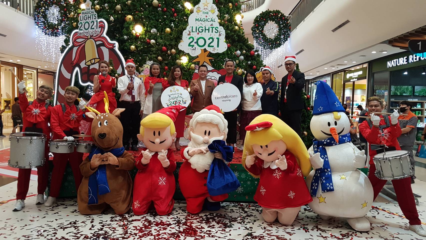 วันที่ 28 พฤศจิกายน ที่ ศูนย์การค้าเซ็นทรัลพลาซา ระยอง นางสาว เกตน์สิรี สมบูรณ์ศิลป์ รองผู้อำนวยการการท่องเที่ยวแห่งประเทศไทย สำนักงานระยอง นายธนภัทร วงษ์ประเสริฐ ผู้จัดการทั่วไปศูนย์การค้าเซ็นทรัลพลาซา ระยอง นายกรวุฒิ พลอาษา ผู้จัดการทั่วไปห้างสรรพสินค้าโรบินสัน สาขาระยอง ร่วมฉลองเปิดไฟต้นคริสต์มาส Christmas Tree light up Celebration เพื่อเฉลิมฉลองเทศกาลคริสต์มาสและปีใหม่ที่กำลังจะมาถึง