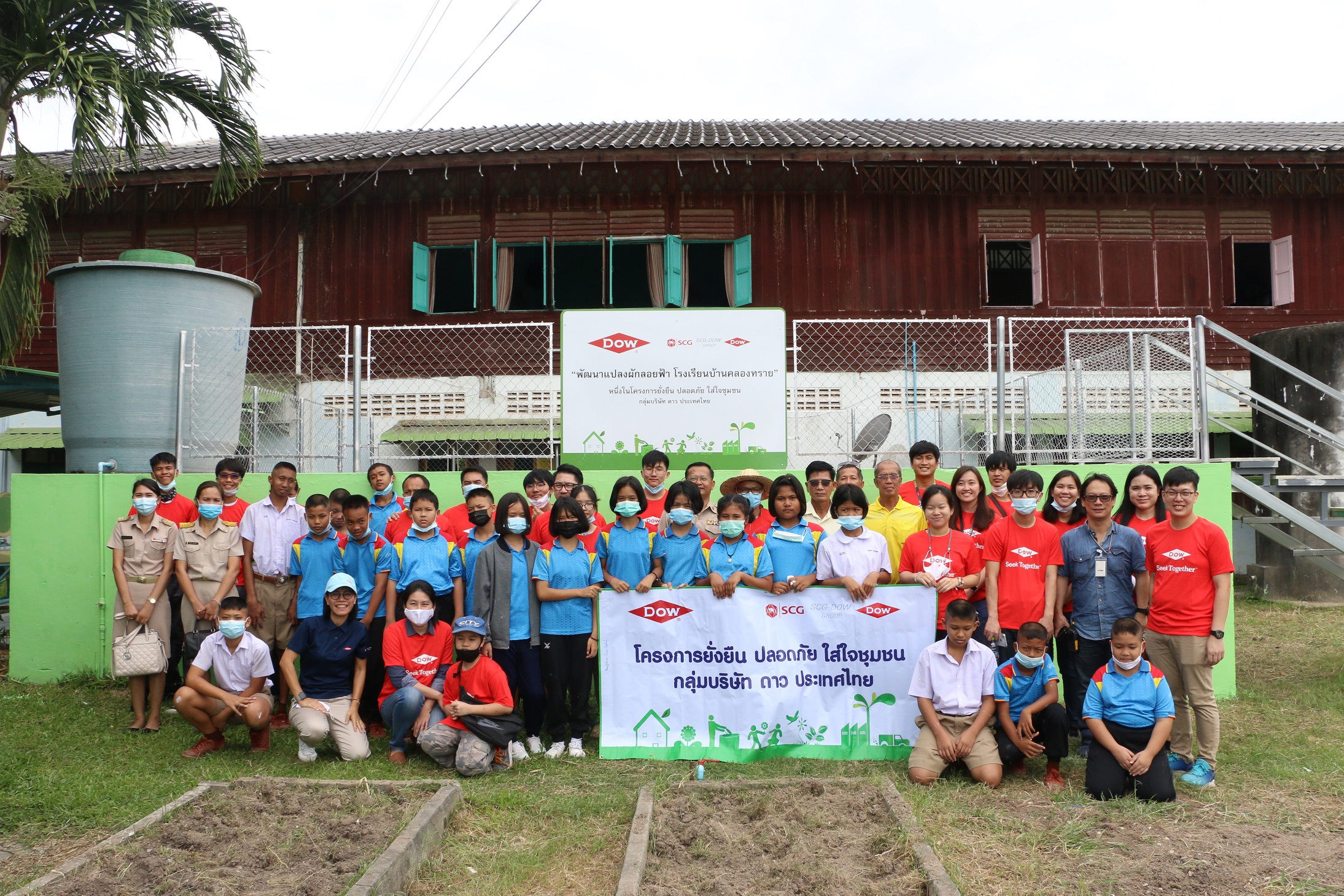 กลุ่มบริษัทดาวและพนักงานจิตอาสาร่วมกันปรับปรุงพื้นที่แปลงผักโรงเรียนบ้านคลองทราย