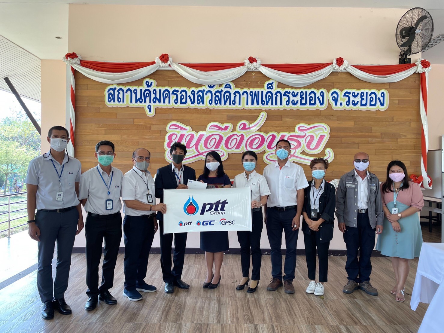 ดร.วิสุทธิ์ หนูงาม กล่าวว่า “กลุ่ม ปตท. จังหวัดระยอง ประกอบด้วย บริษัท ปตท. จำกัด (มหาชน) , บริษัท พีทีที โกลบอล เคมิคอล จำกัด (มหาชน) และ บริษัท โกลบอล เพาเวอร์ ซินเนอร์ยี่ จำกัด (มหาชน) เห็นความสำคัญในการสร้างโอกาสให้กับของเยาวชนที่อยู่ภายใต้ความดูแลของสถานคุ้มครองสวัสดิภาพเด็กระยอง จังหวัดระยอง ให้เป็นเยาวชนที่มีคุณภาพพร้อมที่จะก้าวไปสู่สังคมภายนอกอย่างมีความสุขด้วยการส่งเสริมด้านกาศึกษาและทักษะในการประกอบอาชีพต่างๆ จึงได้สนับสนุนงบประมาณสำหรับการจัดหาอุปกรณ์ทางการศึกษาและฝึกอาชีพ เช่น เครื่องโปรเจคเตอร์ เตาอบขนม เป็นต้น เพื่อให้เยาวชนได้ใช้ประโยชน์และสร้างรายได้อีกทางหนึ่ง
