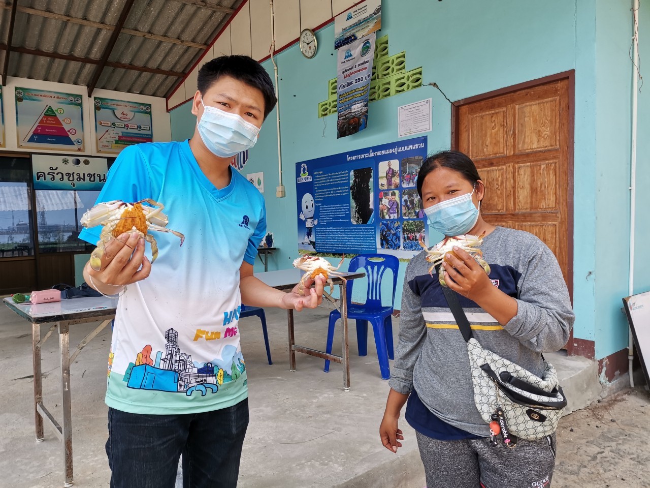 บริษัท เอ็ชเอ็มซี โปลีเมอส์ จำกัด ดำเนินโครงการธนาคารปูไข่ ปีที่ 4 ร่วมกับกลุ่มประมงเรือเล็กตากวน-อ่าวประดู่และกลุ่มประมงเรือเล็กปากคลองตากวน จัดกิจกรรมต่อเนื่อง “รับซื้อแม่ปูไข่นอกกระดอง” สัปดาห์ที่ 2 ของเดือน ณ ที่ทำการกลุ่มประมงเรือเล็กตากวน-อ่าวประดู่ เพื่อเพิ่มการหมุนเวียนทรัพยากรปูในท้องทะเลด้วยการอนุรักษ์แม่ปูไข่นอกกระดองให้สามารถแพร่พันธุ์ได้อย่างต่อเนื่อง ซึ่งจะนำแม่ปูไข่ไปปล่อยในแพกระชังของโครงการฯ ให้เขี่ยไข่เองตามธรรมชาติ เพื่อเป็นการเพิ่มปริมาณปูในท้องทะเล ทำให้ชาวประมงสามารถจับปูได้ในพื้นที่ของตนเองไม่ต้องออกเรือไปนอกพื้นที่ ทั้งนี้แม่ปูที่เขี่ยไข่แล้วสามารถนำกลับมาขายเพื่อเป็นรายได้หมุนเวียนของธนาคารปูไข่ต่อไป โดยจัดขึ้นวันที่ 13 มีนาคม 2564 ที่ผ่านมา