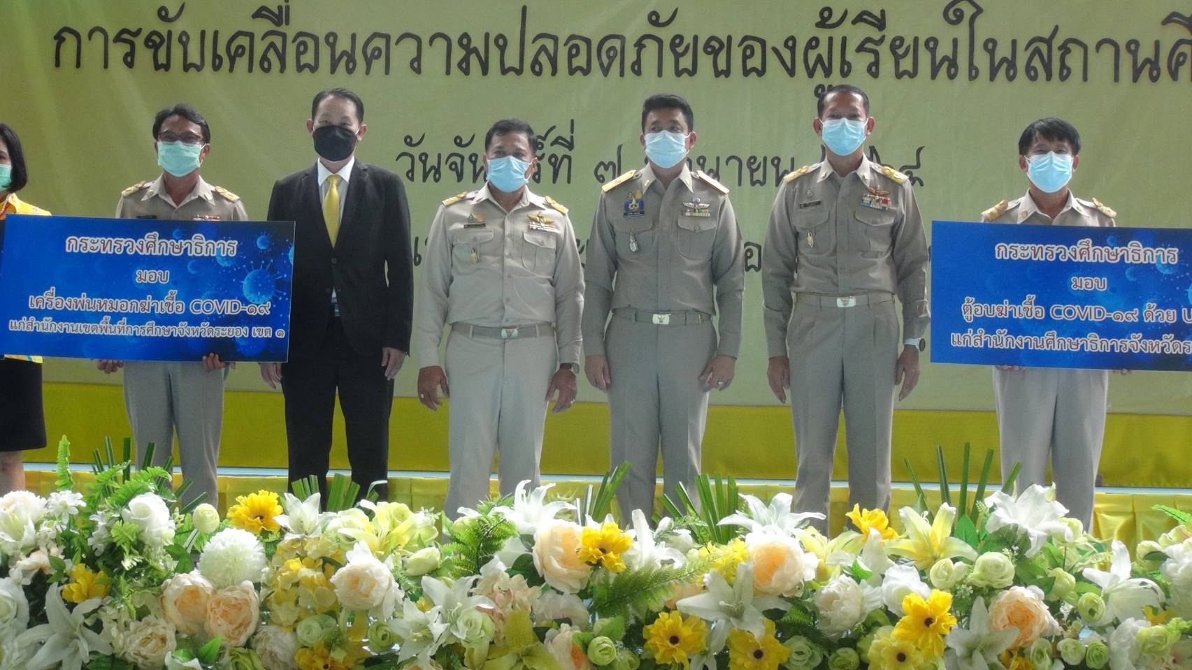 ที่ปรึกษารัฐมนตรีว่าการกระทรวงศึกษาธิการ มอบนวัตกรรมเครื่องพ่นฆ่าเชื้อโควิด-19 แก่หน่วยงานต่างๆ ในพื้นที่จังหวัดระยอง เพื่อนำไปใช้ให้เกิดประโยชน์ในการยับยั้งการแพร่ระบาดของโควิด-19 พร้อมมอบแนวทางขับเคลื่อนความปลอดภัยของผู้เรียนในสถานศึกษาก่อนเปิดภาคเรียน ย้ำสถานศึกษายังคงให้มีมาตรการเข้มงวดเหมือนเดิมตามมาตรการกระทรวงสาธารณสุข