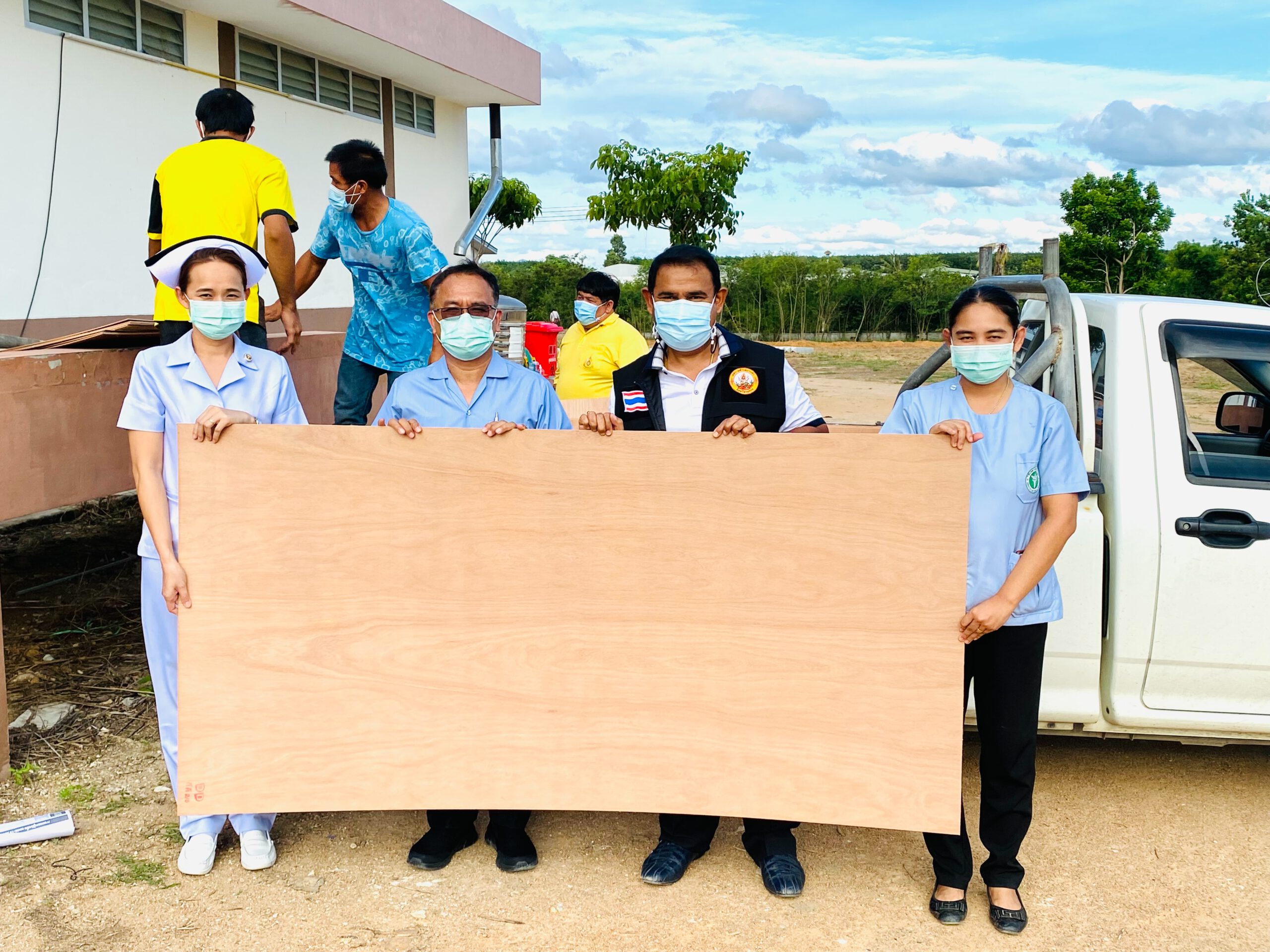 เทศบาลตำบลมาบข่า ส่งมอบแผ่นไม้อัดเพื่อใช้เป็นพื้นเตียงกระดาษรักษาผู้ป่วยโควิด-19 ของโรงพยาบาลนิคมพัฒนา