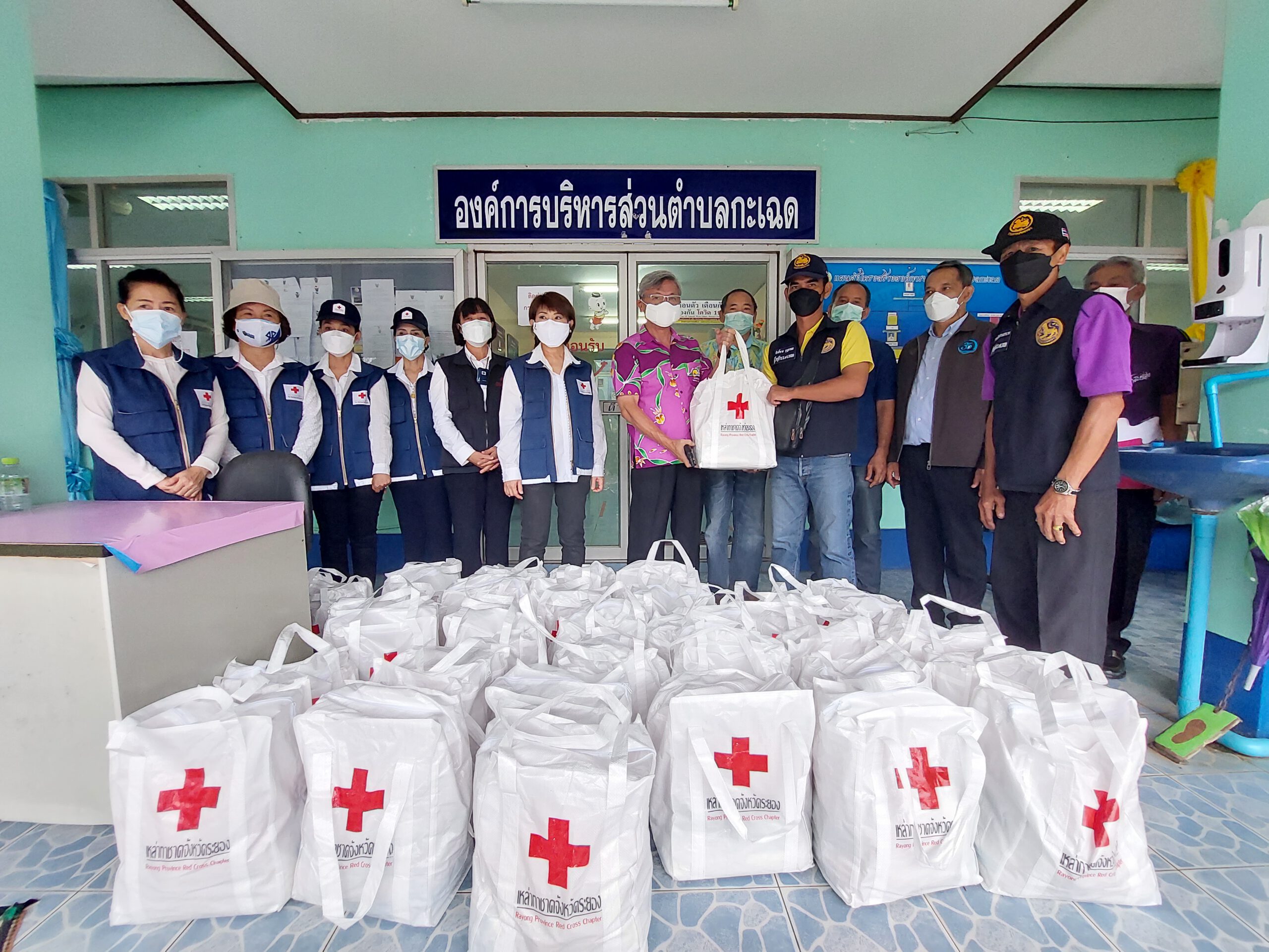 เมื่อวันที่ 27 สิงหาคม 2564 นายชาญนะ เอี่ยมแสง ผู้ว่าราชการจังหวัดระยอง พร้อมด้วย นางธัมมิกา เอี่ยมแสง นายกเหล่ากาชาดจังหวัดระยอง รองนายกเหล่ากาชาดฯ นายกกิ่งกาชาดอำเภอแกลง คณะกรรมการเหล่ากาชาดฯ คณะกรรมการกิ่งกาชาดอำเภอแกลง ร่วมออกเยี่ยมให้กำลังใจ พร้อมทั้งมอบชุดธารน้ำใจและน้ำดื่ม ให้กับผู้ได้รับผลกระทบจากอุทกภัยภายในเขตพื้นที่อำเภอเมืองระยอง และอำเภอแกลง ได้แก่ ตำบลสำนักทอง ตำบลกะเฉด และอำเภอแกลง นอกจากนี้ ยังได้มอบเงินช่วยเหลือครอบครัวผู้ยากไร้ ที่ได้รับผลกระทบจากมาตรการการป้องกันและควบคุมการแพร่ระบาดของโรคติดเชื้อไวรัสโคโรน่า 2019 หรือโควิด-19 ประจำปีงบประมาณ 2564 ภายในเขตพื้นที่อำเภอแกลง อำเภอเขาชะเมา และอำเภอวังจันทร์ ประกอบด้วย อำเภอแกลง 21 ราย รายละ 1,000 บาท อำเภอเขาชะเมา 15 ราย รายละ 1,000 บาท อำเภอวังจันทร์ 21 ราย รายละ 1,000 บาท พร้อมทั้งมอบถุงธารน้ำใจและน้ำดื่มเพื่อใช้ในการดำรงชีวิตด้วย