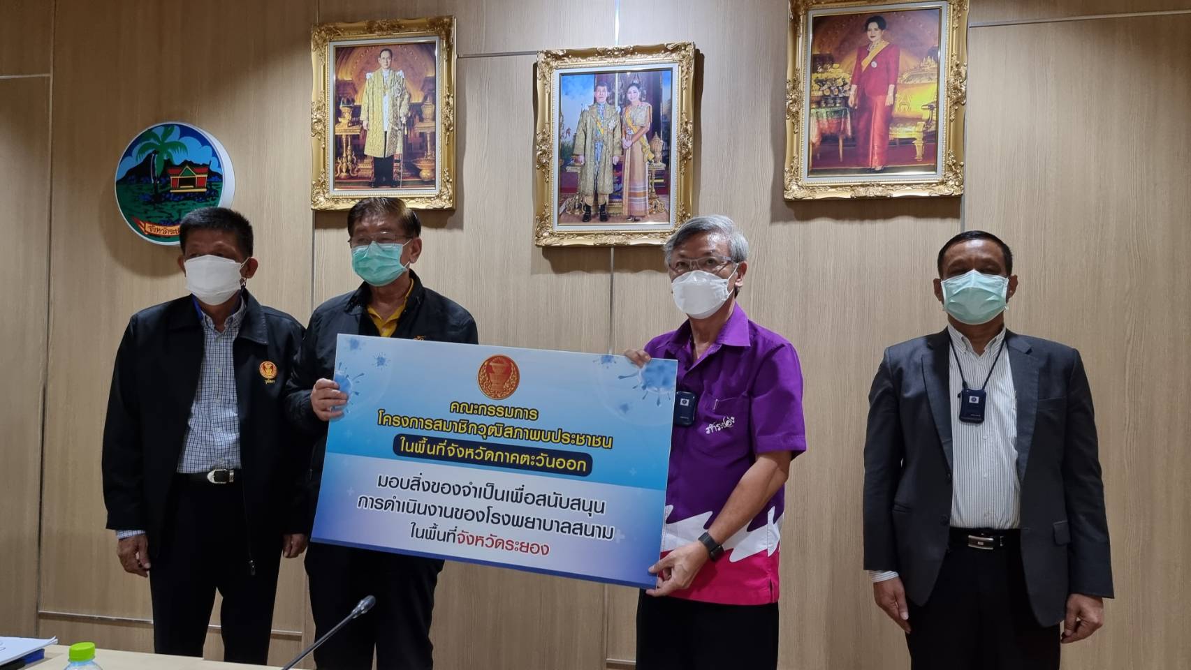 คณะกรรมการโครงการสมาชิกวุฒิสภาพบประชาชนในพื้นที่จังหวัดภาคตะวันออก จัดพิธีส่งมอบวัสดุอุปกรณ์ทางการแพทย์ และสิ่งของจำเป็นเร่งด่วน เพื่อสนับสนุนการดำเนินงานของโรงพยาบาลสนามในพื้นที่จังหวัดระยอง พร้อมทั้งร่วมประชุมหารือ เพื่อรับทราบข้อมูลในประเด็นปัญหาเร่งด่วนของจังหวัดจากสถานการณ์การแพร่ระบาดของโรคติดเชื้อไวรัสโคโรนา 2019 และความคืบหน้าของโครงการต่าง ๆ ตามยุทธศาสตร์ชาติ และแผนปฏิรูปประเทศที่เป็นรูปธรรมและส่งผลกระทบต่อประชาชนจังหวัดระยอง