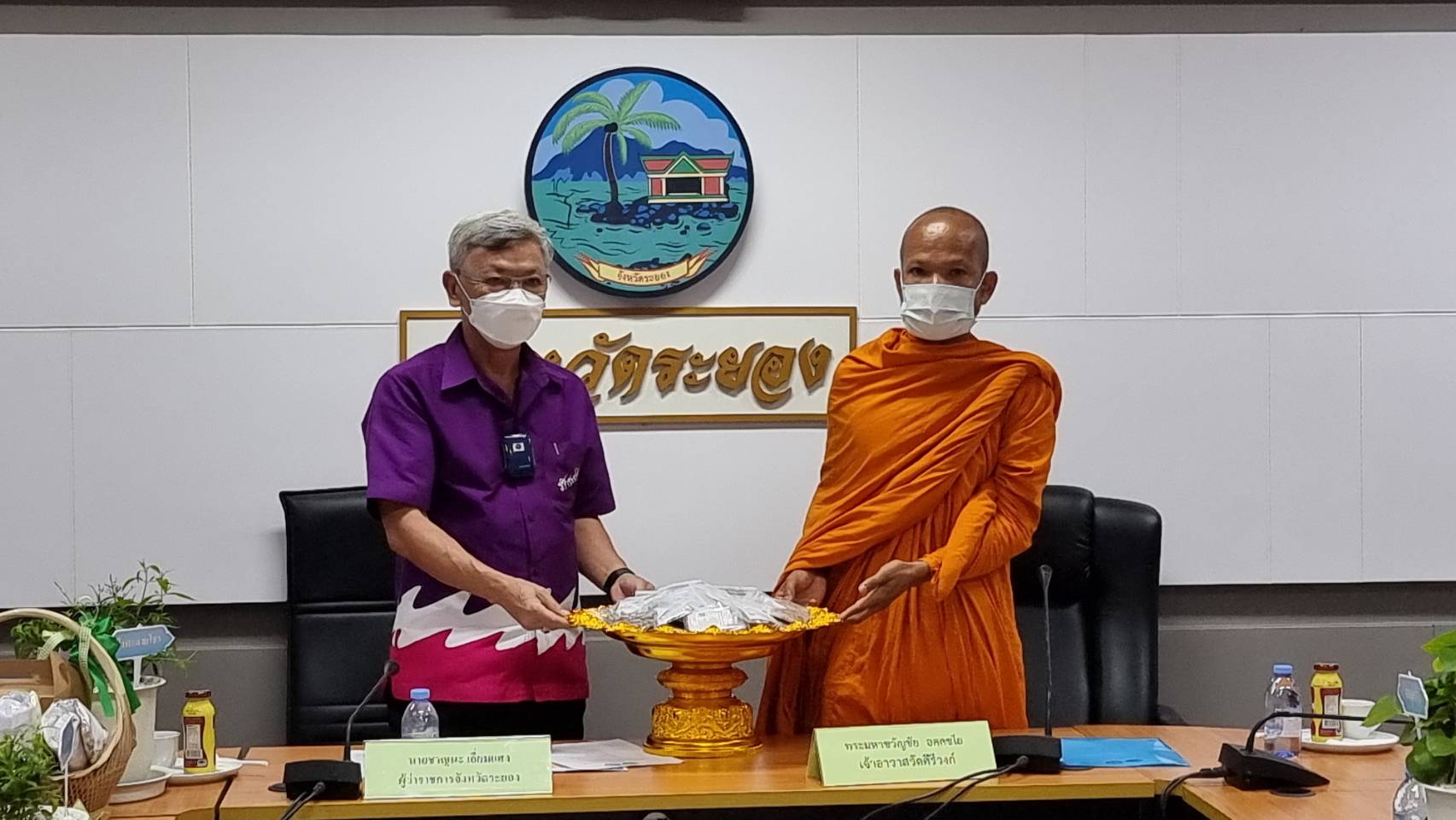 เมื่อเวลา 13.30 น.วันที่ 1 ต.ค.64 ที่ห้องประชุมอินทรวิชิต ชั้น 3 ศาลากลางจังหวัดระยอง ต.เนินพระ อ.เมือง จ.ระยอง ผู้สื่อข่าวรายงานว่า พระมหาขวัญชัย อัคคชโย เจ้าอาวาสวัดคีรีวงก์ หรือวัดน้ำตก อยู่ ม.9 ต.บางมะพร้าว อ.หลังสวน จ.ชุมพร ส่งมอบยาเม็ดแบบแคปซูลสมุนไพรสร้างเสริมระบบภูมิคุ้มกันสู้โควิด-19 ตำรับวัดคีรีวงก์ เป็นจำนวน 500,000 เม็ด ให้กับจังหวัดระยอง โดยมีนายชาญนะ เอี่ยมแสง ผู้ว่าราชการจังหวัดระยอง นายแพทย์สุนทร เหรียภูมิการกิจ นายแพทย์สาธารณสุขจังหวัดระยอง พร้อมหัวหน้าส่วนราชการจังหวัดระยองเป็นผู้แทนรับมอบ พร้อมกับอธิบายความเป็นมาของตำรับยาสมุนไพรฯ เบื้องหลังการผลิต-วิธีการใช้-สรรพคุณสมุนไพรฯ ให้ผู้เกี่ยวข้องในจังหวัดระยองทราบ เพื่อประโยชน์ในการรักษาผู้ป่วยโควิด-19 ในจังหวัดระยอง ด้วยตำรับยาสมุนไพรของทางวัดคีรีวงก์ดังกล่าว