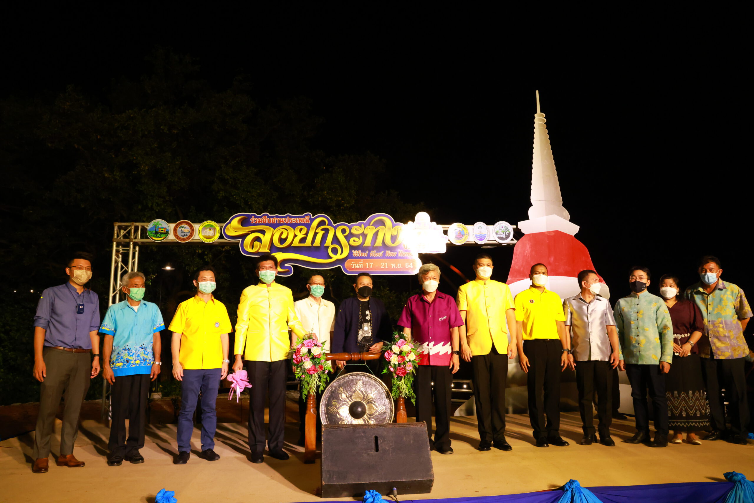 รัฐมนตรีช่วยว่าการกระทรวงสาธารณสุขลั่นฆ้องเปิดงานสืบสานประเพณีลอยกระทง ประจำปี 2564 ที่พระเจดีย์กลางน้ำระยอง