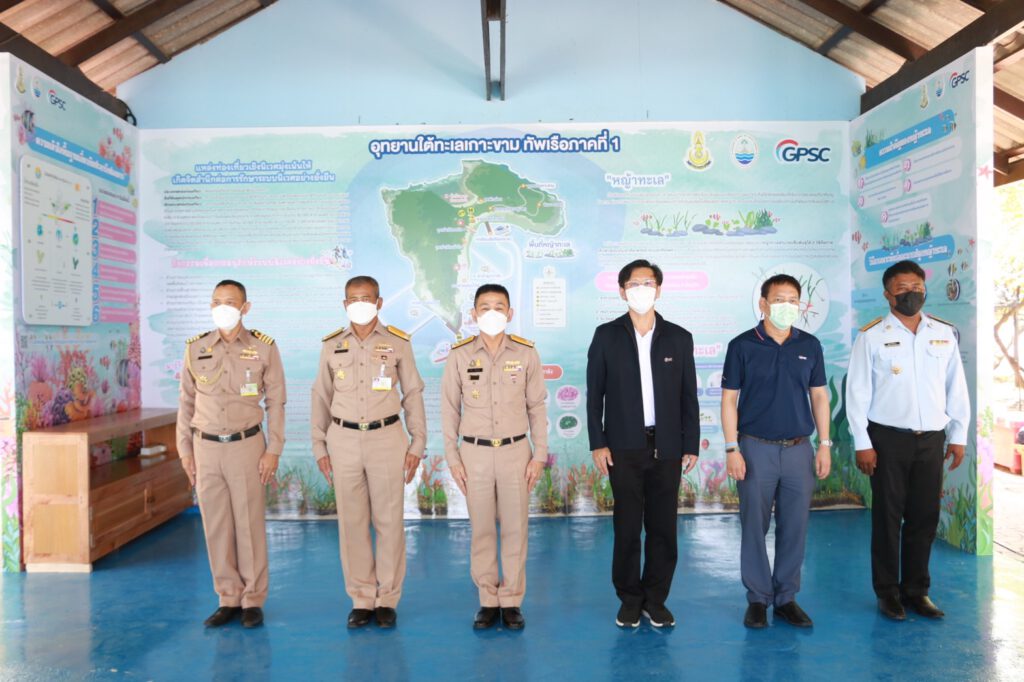 นอกจากนี้ ผู้บริหารกลุ่มบริษัท GPSC และผู้บัญชาการทัพเรือภาคที่ 1 ยังได้ร่วมกันเปิดศูนย์เรียนรู้อุทยานใต้ทะเลเกาะขาม เยี่ยมชมบอร์ดนิทรรศการ รับฟังการบรรยายให้ความรู้เกี่ยวกับความสำคัญของหญ้าทะเล รวมทั้งเยี่ยมชมโครงการผลิตไฟฟ้าพลังงานแสงอาทิตย์ที่ GPSC ได้ดำเนินการปรับปรุงระบบเพื่อให้สามารถใช้งานได้ยาวนานขึ้น โดยวัตถุประสงค์ของการดำเนินกิจกรรมทั้งหมดนี้ก็เพื่อบำรุงรักษาระบบนิเวศและทรัพยากรธรรมชาติทางทะเลให้อุดมสมบูรณ์ เป็นแหล่งอาหารของสัตว์น้ำ สามารถดึงดูดนักท่องเที่ยว และสร้างรายได้ให้ชุมชนประมงโดยรอบ ตอกย้ำการเป็นแหล่งท่องเที่ยวเชิงธรรมชาติอย่างแท้จริง