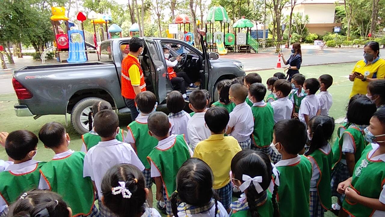 เทศบาลตำบลทับมา จับเด็กนักเรียนปฐมวัยฝึกปฏิบัติเอาตัวรอดจากเหตุติดในรถยนต์ จมน้ำ ไฟฟ้าช็อต และไฟไหม้