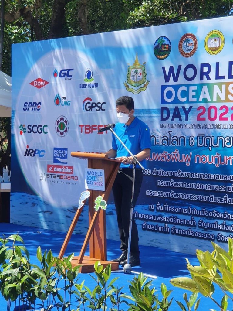 นายรัชดา สวัสดิรักษ์ กล่าวถึงการมีส่วนร่วมของภาคเอกชนกับหน่วยงานภาครัฐและชุมชน ในการอนุรักษ์ทรัพยากรทางทะเลและชายฝั่ง ผ่านการดำเนินงานโครงการต่างๆ ร่วมกัน พร้อมขับเคลื่อนธุรกิจโดยการนำแนวนโยบายด้าน BCG (BIO CIRCULAR GREEN ECONOMY) ของประเทศมาปรับใช้ ควบคู่ไปกับการอนุรักษ์สิ่งแวดล้อมและดูแลชุมชนให้เติบโตไปด้วยกัน มุ่งเน้นการใช้ทรัพยากรให้เกิดประโยชน์สูงสุด ตามแนวทาง CIRCULAR ECONOMY เพื่ออนุรักษ์ท้องทะเลไทย ให้กลับมามีความสวยงามและอุดมสมบูรณ์ ตามเป้าหมายที่ตั้งไว้ให้สำเร็จ ในงานวันทะเลโลก “รวมพลังฟื้นฟู กอบกู้มหาสมุทร” ณ ป่าในเมือง พระเจดีย์กลางน้ำ ต.ปากน้ำ อ.เมืองระยอง จ.ระยอง โดยมีว่าที่ ร.ต.พิรุณ เหมะรักษ์ รองผู้ว่าราชการจังหวัด เป็นประธานเปิดงาน