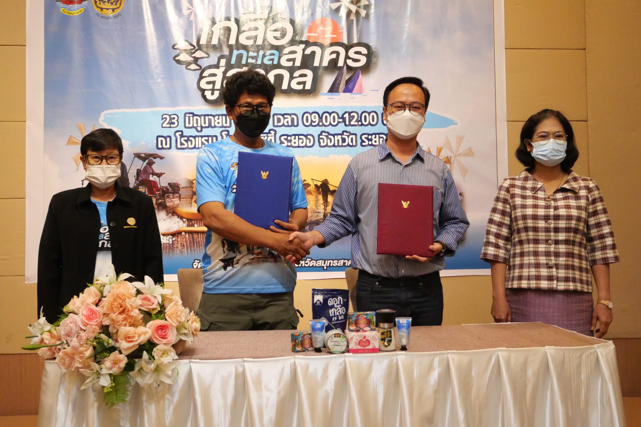 จังหวัดสมุทรสาครร่วมกับพาณิชย์จังหวัดระยอง จัดงานเจรจาธุรกิจโครงการพัฒนาเกลือทะเลสู่สากล สร้างโอกาสให้กับเกษตรกรนาเกลือได้มีช่องทางการจำหน่ายสินค้าโดยตรง