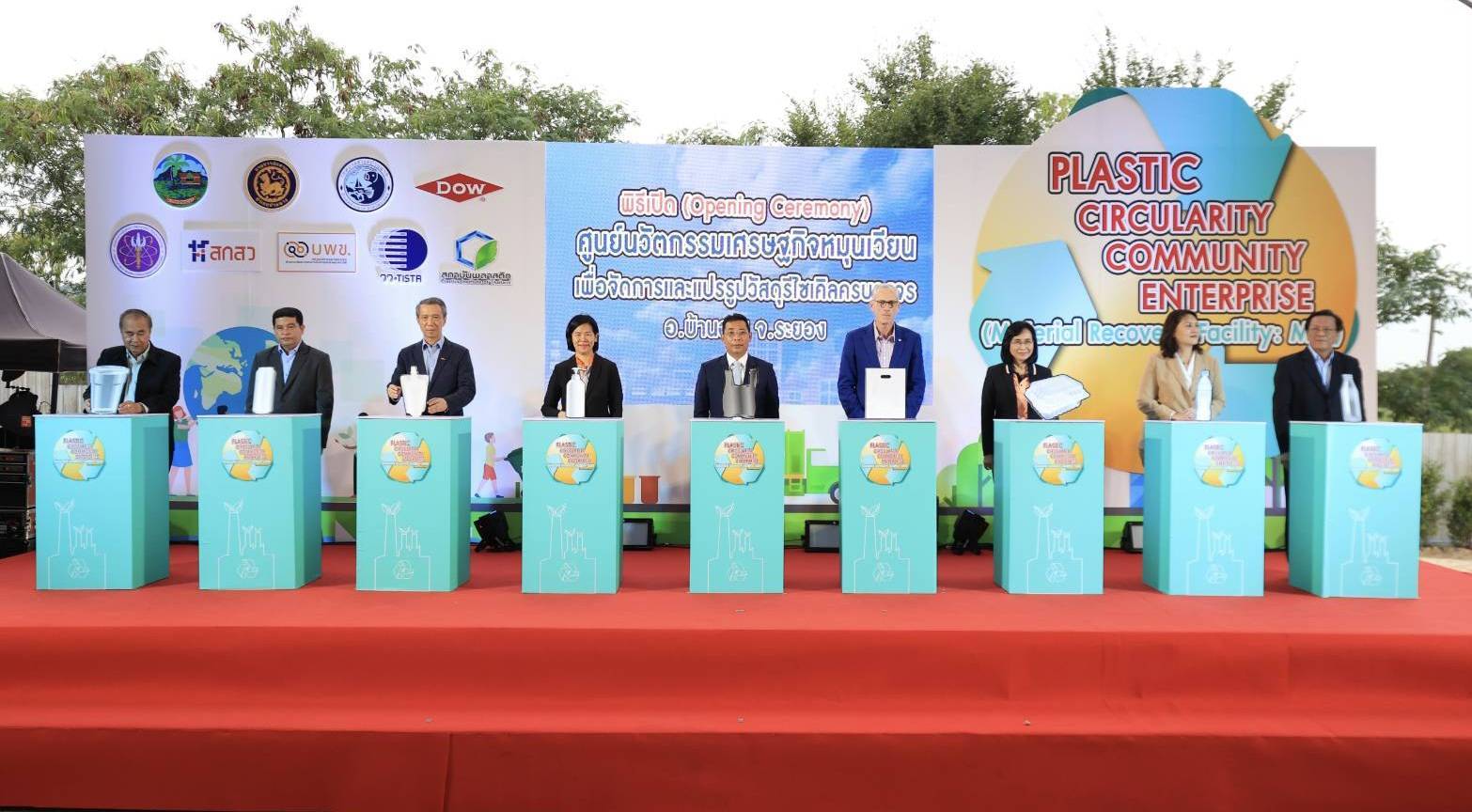 นายไตรภพ วงศ์ไตรรัตน์ ผู้ว่าราชการจังหวัดระยอง เป็นประธานในพิธีเปิดอย่างเป็นทางการของ “ศูนย์นวัตกรรมเศรษฐกิจหมุนเวียนเพื่อจัดการและแปรรูปวัสดุรีไซเคิลครบวงจร (Material Recovery Facility: MRF)” ซึ่งเป็นต้นแบบแห่งแรกของประเทศไทยสำหรับการคัดแยกและยกระดับคุณภาพวัสดุรีไซเคิลเหลือใช้ในชุมชนด้วยนวัตกรรมและเทคโนโลยีฝีมือคนไทย พร้อมดำเนินการในรูปแบบ “ธุรกิจชุมชน” หรือ Community Enterprise ซึ่งก่อตั้งด้วยความร่วมมือจากทุกภาคส่วน ได้แก่ กลุ่มบริษัท ดาว ประเทศไทย (Dow) วว. บพข. สถาบันพลาสติก เทศบาลตำบลบ้านฉาง อำเภอบ้านฉาง และจังหวัดระยอง ตั้งเป้าแก้ปัญหาพลาสติกใช้แล้วและวัสดุรีไซเคิลในหลุมฝังกลบเพื่อนำกลับเข้าสู่กระบวนการรีไซเคิลในแต่ละปีกว่า 1,000 ตัน และลดการปล่อยก๊าซเรือนกระจกได้ถึง 2,400 ตันคาร์บอนไดออกไซด์เทียบเท่าต่อปี