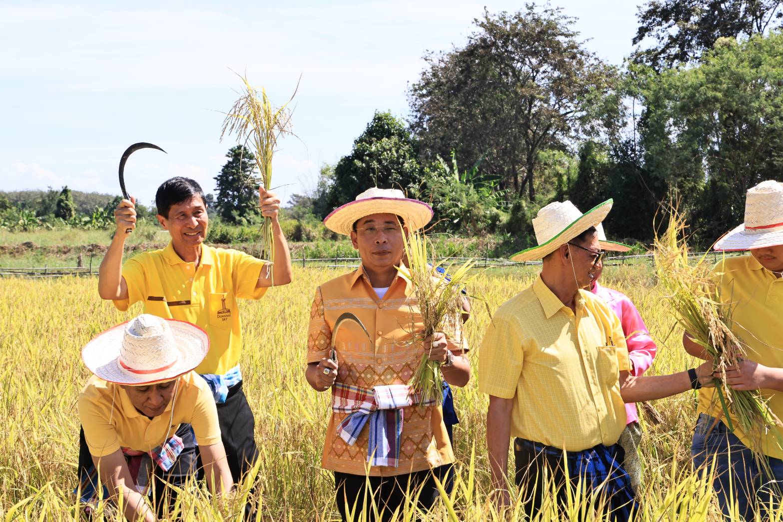 พ่อเมืองระยอง นำข้าราชการ ประชาชน และนักเรียนร่วมลงแขกเกี่ยวข้าว ในแปลงนาสาธิต ศูนย์บริการพัฒนาปลวกแดงตามพระราชดำริ อ่างเก็บน้ำดอกกราย อ.ปลวกแดง จ.ระยอง