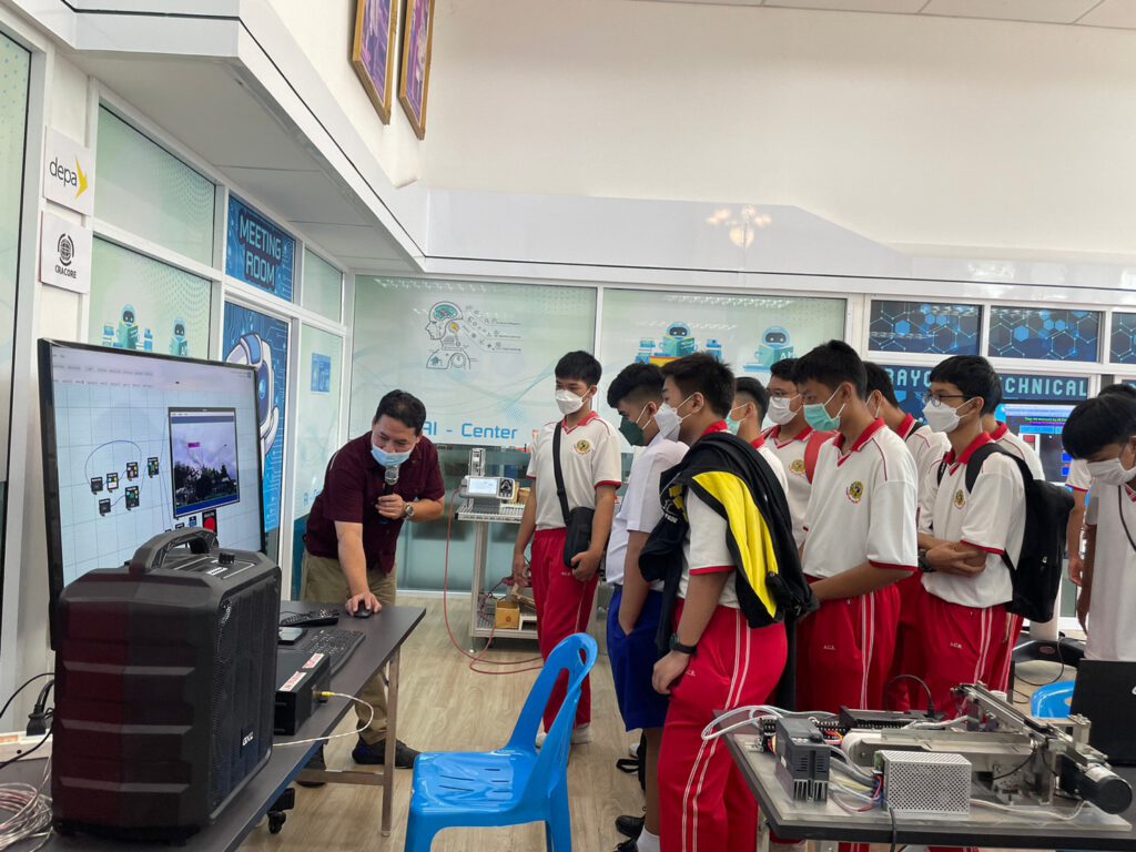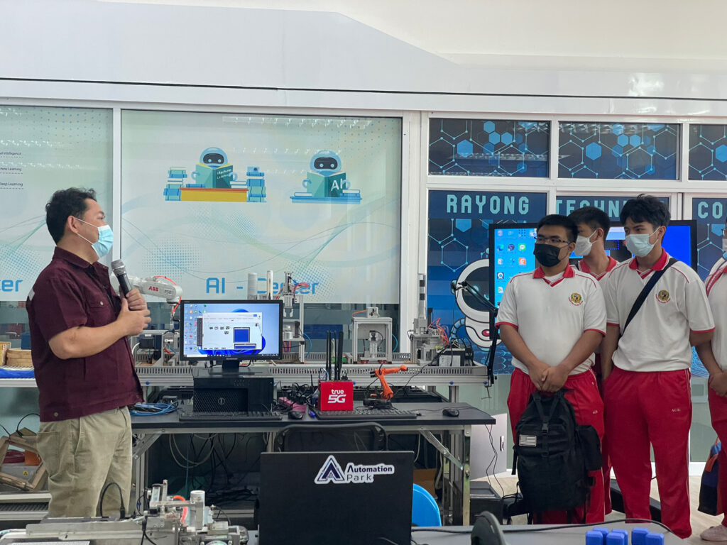 วิทยาลัยเทคนิคระยอง โชว์ทักษะวิชาชีพด้านเทคโนโลยีปัญญาประดิษฐ์แก่ครู นักเรียนสถานศึกษาในพื้นที่ที่สนใจเรียนด้านเทคโนโลยีปัญญาประดิษฐ์เพื่ออุตสาหกรรมใน EEC