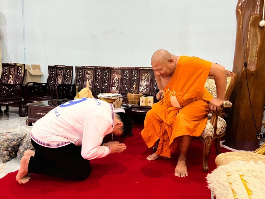“นฤพล”ผู้สมัคร ส.ส.ระยอง พรรคพลังประชารัฐ(พปชร.)อาบน้ำมนต์-ลงยันต์เสื้อแจ็คเก็ต โดยพระเกจิดัง เอาฤกษ์เอาชัยก่อนลุยขอคะแนนเสียง