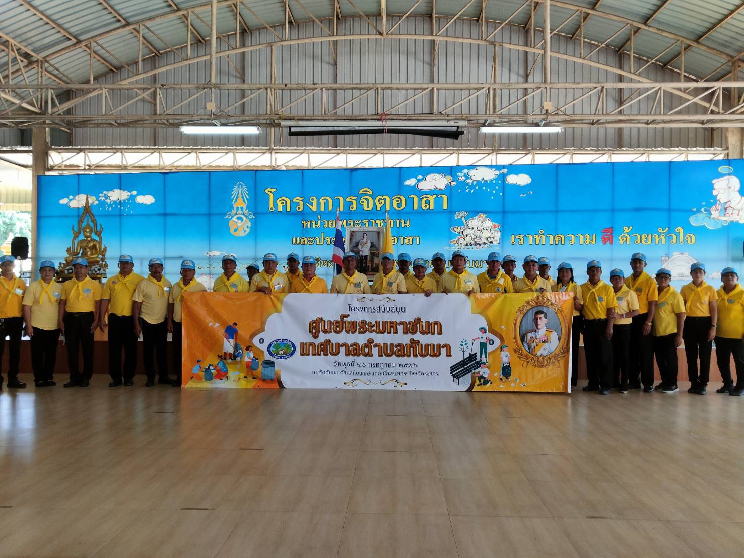 วันที่ 26 ก.ค.ที่วัดทับมา ต.ทับมา อ.เมือง จ.ระยอง นายประเสริฐ วงษ์ศรี นายกเทศมนตรีตำบลทับมา เป็นประธานเปิดกิจกรรมจิตอาสา”เราทำความดี ด้วยหัวใจ”ซึ่งมีผู้บริหาร หัวหน้าส่วนราชการ เจ้าหน้าที่เทศบาลตำบลทับมา ประชาชน นักเรียน และจิตอาสาทั้ง 8 หมู่บ้าน ร่วมกิจกรรมฯ ซึ่งจัดขึ้นเนื่องในโอกาสวันเฉลิมพระชนมพรรษาพระบาทสมเด็จพระเจ้าอยู่หัว ประจำปี 2566 เพื่อถวายเป็นพระราชกุศล และเป็นการแสดงออกถึงความจงรักภักดีต่อสถาบันพระมหากษัตริย์ รวมทั้งเป็นการน้อมสำนึกในพระมหากรุณาธิคุณของพระบาทสมเด็จพระเจ้าอยู่หัว โดยได้ร่วมกันทำความสะอาด เก็บกวาดขยะ รวมทั้งพัฒนา และปรับภูมิทัศน์ภายในวัดทับมาให้มีความสวยงามสะอาดตา