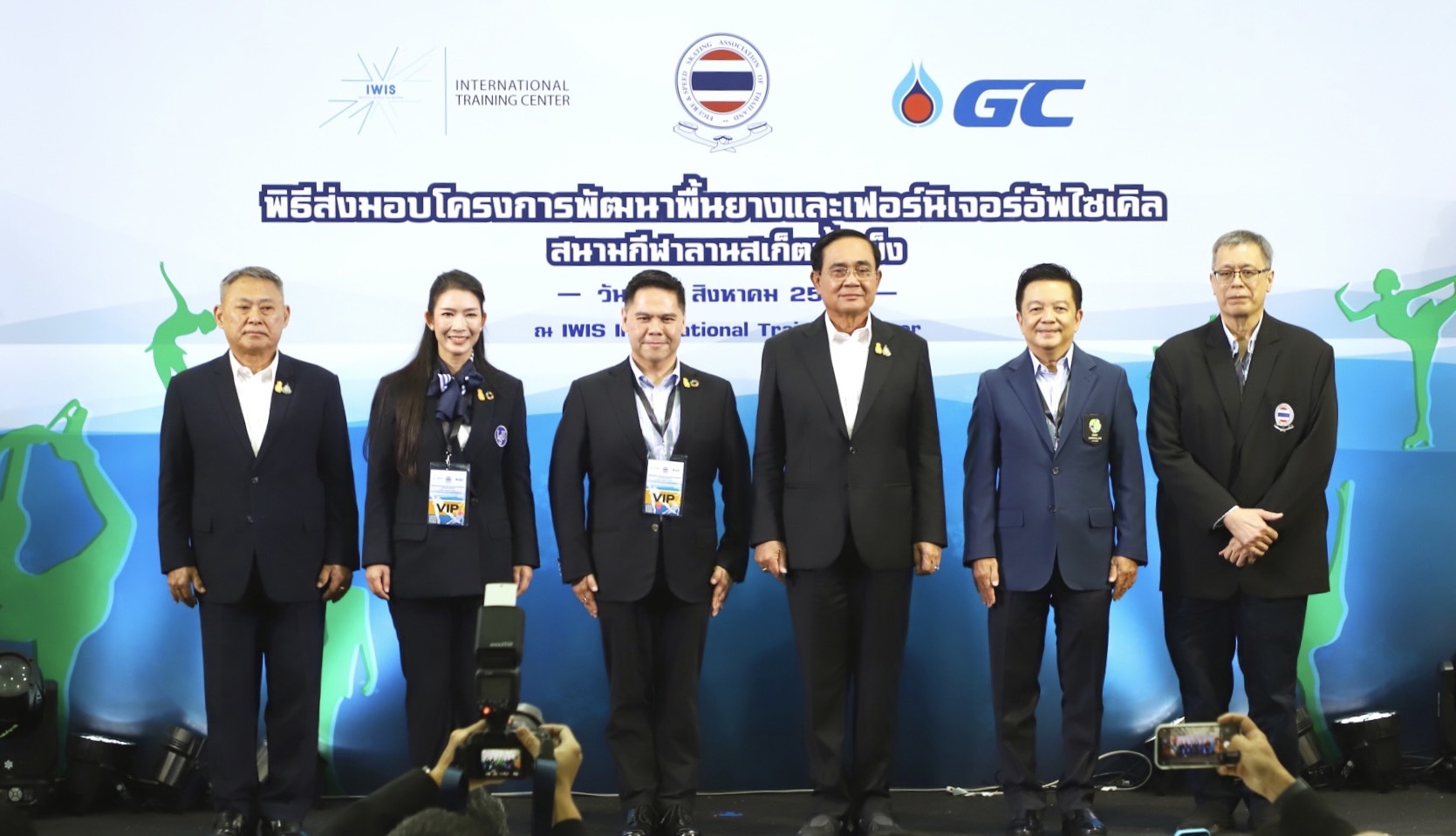 วันที่ 11 สิงหาคม 2566 บริษัท พีทีที โกลบอล เคมิคอล จำกัด (มหาชน) หรือ GC พัฒนาและส่งมอบพื้นยางและเฟอร์นิเจอร์อัพไซเคิลให้สมาคมกีฬาฟิกเกอร์และสปีดสเก็ตติ้งแห่งประเทศไทย ใน“พิธีส่งมอบโครงการพัฒนาพื้นยางและเฟอร์นิเจอร์อัพไซเคิล สนามกีฬาลานสเก็ตน้ำแข็ง” ซึ่งงานนี้ได้รับเกียรติจากท่าน พลเอกประยุทธ จันทร์โอชา นายกรัฐมนตรี มาเป็นประธานในพิธี ร่วมด้วย นายวราวุธ ศิลปอาชา รัฐมนตรีว่าการกระทรวงทรัพยากรธรรมชาติและสิ่งแวดล้อม ดร. คงกระพัน อินทรแจ้ง ประธานเจ้าหน้าที่บริหารและกรรมการผู้จัดการใหญ่ GC ดร. สีหศักดิ์ อารีราชการันย์ นายกสมาคมกีฬาฟิกเกอร์และสปีดสเก็ตติ้งแห่งประเทศไทย และ ดร. สุวรรณา ศิลปอาชา กรรมาธิการสหพันธ์สเก็ตน้ำแข็งนานาชาติ ณ ลานสเก็ตน้ำแข็ง ไอวิสอินเตอร์เนชั่นแนล เทรนนิ่ง เซ็นเตอร์ ชั้น 5 ศูนย์การค้าอิมพีเรียล เวิลด์ สำโรง จังหวัดสมุทรปราการ