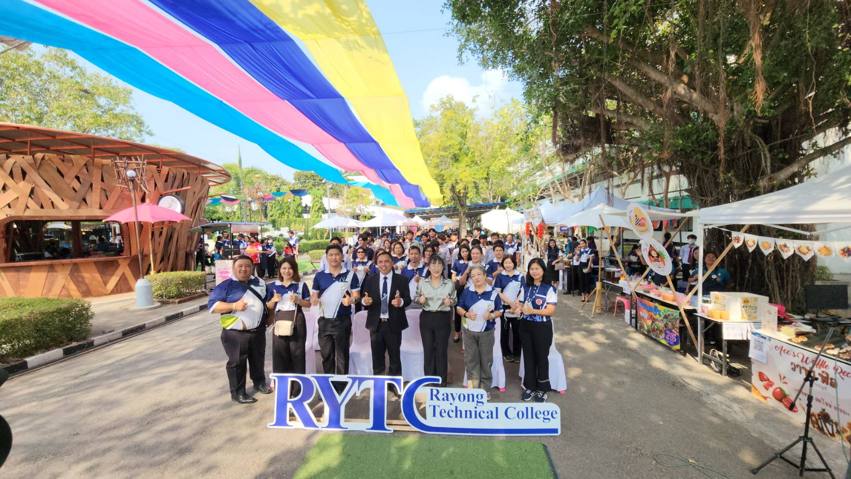 เมื่อเวลา 10.00 น.วันที่ 31 ม.ค.ที่บริเวณลานกิจกรรมลังนก วิทยาลัยเทคนิคระยอง ต.ท่าประดู่ อ.เมือง จ.ระยอง นายกิตติพงค์ อุตตมะเวทิน ผอ.วิทยาลัยเทคนิคระยอง เป็นประธานเปิดโครงการ RYTC Maket โดยเปิดให้ นศ.จาก 13 แผนกสาขาวิชา นำสินค้า อาหาร และเครื่องดื่มที่ทำขึ้นเองหลากหลายเมนู มาเปิดบูธจำหน่ายให้ครู อาจารย์ บุคลากรทางการศึกษา และเพื่อน นศ. รวม 6,000 คน อาหารที่วางจำหน่ายมี หมี่คลุก ส้มตำ ไก่ทอด หมึกย่าง ยำมะม่วง ชาบู ขนมจีบ ก๋วยเตี๋ยว ไอศกรีม ลูกชิ้นทอด และประเภทเครื่องดื่ม ทั้งชา กาแฟ น้ำสมุนไพร  เป็นต้น รวมกว่า 31 รายการ