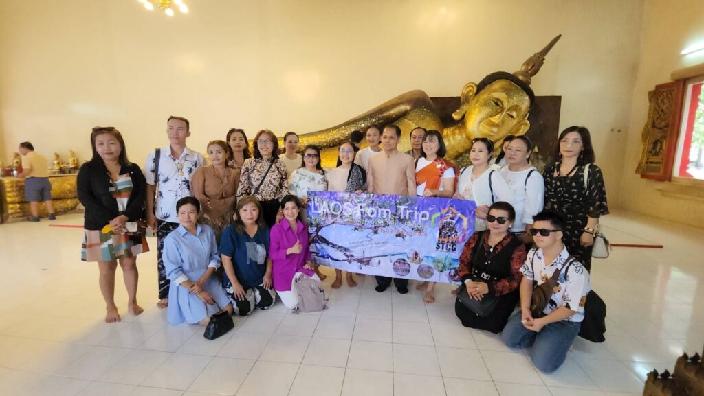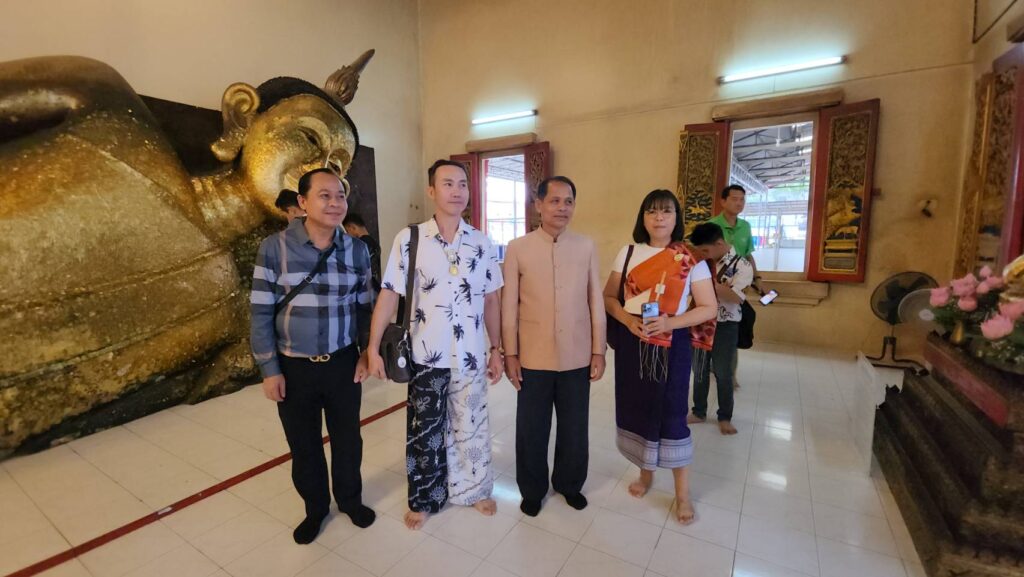 นักท่องเที่ยว สปป.ลาว บินเที่ยวบินปฐมฤกษ์กราบไหว้พระนอนตะแคงซ้าย-ลอดโบสถ์ 100 ปี วัดป่าประดู่