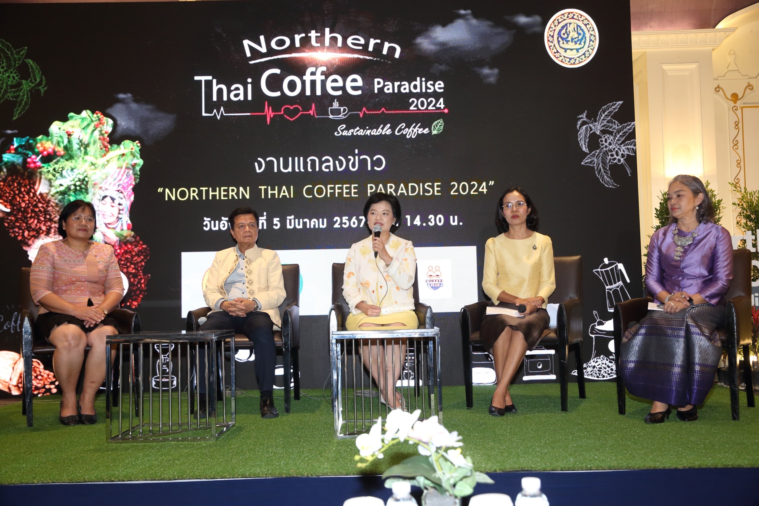 นางสาวปาริชาติ พงค์พันเทา พาณิขย์จังหวัดตาก เปิดเผยถึงการจัดงาน “ภาคเหนือ สวรรค์ของคนรักกาแฟ” ( Northern Thai Coffee Paradise 2024) ว่าปีนี้จัดขึ้นภายใต้แนวคิด “ การผลิตอย่างยั่งยืน (sustainable coffee production) และความหลากหลายทางชีวภาพ โดยมีการนำผลิตภัณฑ์เมล็ดกาแฟ ผลิตภัณฑ์ที่ต่อเนื่องกาแฟ ของภาคเหนือ 17 จังหวัด มาจัดแสดงและจัดจำหน่ายให้กับประชาชน และผู้ที่รักการดื่มกาแฟ โดยในงานยังมีการจัดกิจกรรมแข่งขันกาแฟ TCE Brewer Cup 2024 และการแข่งขัน TCE Taster Cup 2024 ชิงถ้วยพระราชทานสมเด็จเจ้าฟ้าฯ กรมพระศรีสวางควัฒน วรขัตติยราชนารี พร้อมกิจกรรมมากมายทีแสดงให้เห็นถึงศักยภาพของกาแฟภาคเหนือที่มีมาตรฐานระดับสากล รวมถึงกาแฟ specialty coffee ของภาคเหนือ ที่มีเอกลักษณ์ของรสชาติโดดเด่น จนเป็นที่นิยมและได้รับการยอมรับอย่างกว้างขวางอีกด้วย “ที่ผ่านมาจังหวัดในภาคเหนือร่วมสานต่อแนวพระราชดำริฯ ได้มีนโยบายและกำหนดยุทธศาสตร์การพัฒนาส่งเสริมการปลูกกาแฟในภาคเหนืออย่างต่อเนื่อง ส่งผลให้ภาคเหนือมีพื้นที่ปลูกกาแฟอาราบิก้าผลผลิตประมาณ 9,355 ตันต่อปี มากที่สุดในประเทศไทย และโรบัสต้า ประมาณ 1,250 ตันต่อปี ซึ่งที่ผ่านมากรมทรัพย์สินทางปัญญา กระทรวงพาณิชย์ ได้มีการขึ้นทะเบียนกาแฟดอยตุงและกาแฟดอยช้างของจังหวัดเชียงรายเป็นพืชสิ่งบ่งชี้ทางภูมิศาสตร์ (Geographical Indication: GI) กาแฟดอยตุง ดอยช้างของจังหวัดเชียงราย และกาแฟเทพเสด็จของจังหวัดเชียงใหม่ นอกจากนี้ ยังมีการขอขึ้นทะเบียนสิ่งชี้ทางภูมิศาสตร์ GI กาแฟดอยตุง ดอยช้าง ในสหภาพยุโรป(EU) และประเทศญี่ปุ่น และยังมีกาแฟของกลุ่มจังหวัดภาคเหนืออยู่ระหว่าง การพิจารณาคำขอขึ้นทะเบียน GI อีกหลายรายการ เช่น กาแฟอาราบิก้าดอยมูเซอจังหวัดตาก ทั้งหมดนี้ถือเป็นเครื่องการันตีให้เห็นถึงศักยภาพของผลผลิตกาแฟภาคเหนือที่ส่งผลให้เกิดรายได้หมุนเวียนทางเศรษฐกิจมูลค่ากว่า 39,000 ล้านบาท และคาดว่าจะเติบโตขยายตัวอย่างต่อเนื่อง กระทรวงพาณิชย์ ได้ตระหนักถึงความสำคัญในการส่งเสริม พัฒนาต่อยอดเพิ่มโอกาส ช่องทางการตลาดทั้งในและต่างประเทศ สร้างมูลค่าเพิ่มให้กับกาแฟในภาคเหนืออย่างยั่งยืน จึงดำเนินโครงการจัดงาน “ภาคเหนือ สวรรค์ของคนรักกาแฟ” ( Northern Thai Coffee Paradise 2024 ) ภายใต้แนวคิด “การผลิตอย่างยั่งยืน (sustainable coffee production) และความหลากหลายทางชีวภาพ เพื่อเป็นการกระตุ้นการรับรู้กาแฟภาคเหนือผ่านการทำตลาดเชิงรุกให้สอดคล้องกับไลฟ์สไตล์ผู้บริโภคยุคใหม่ และนำความโดดเด่นของกาแฟมาเชื่อมโยงกิจกรรมการท่องเที่ยว สร้างรายได้เพิ่ม เสริมสร้างความเข้มแข็งให้เกษตรกรชาวเขา และชุมชนผู้ปลูกกาแฟ แล
