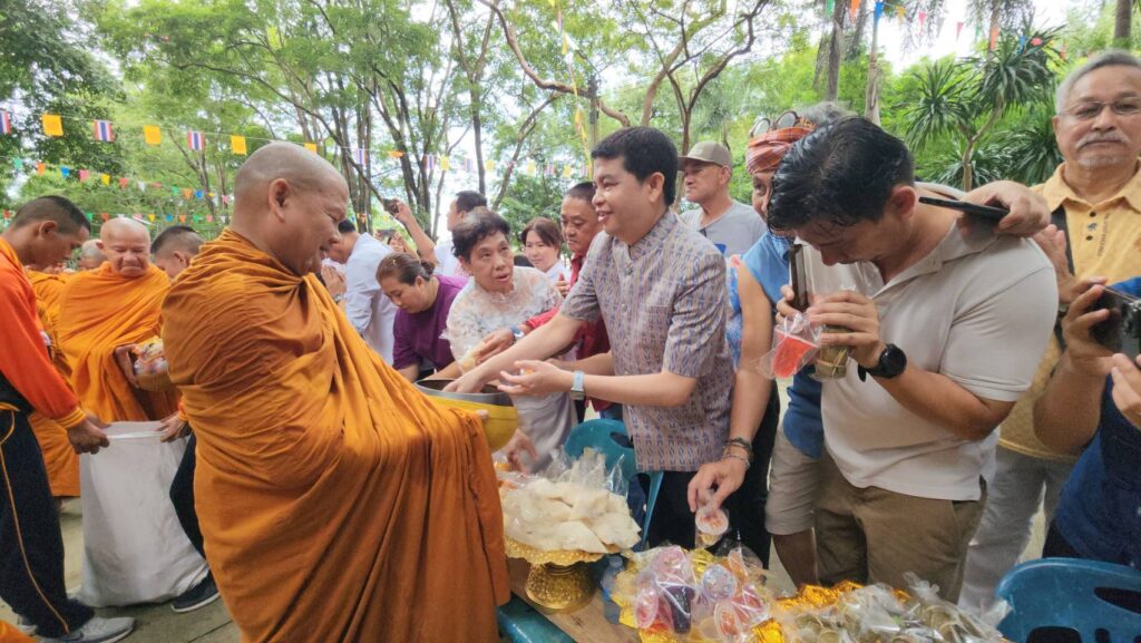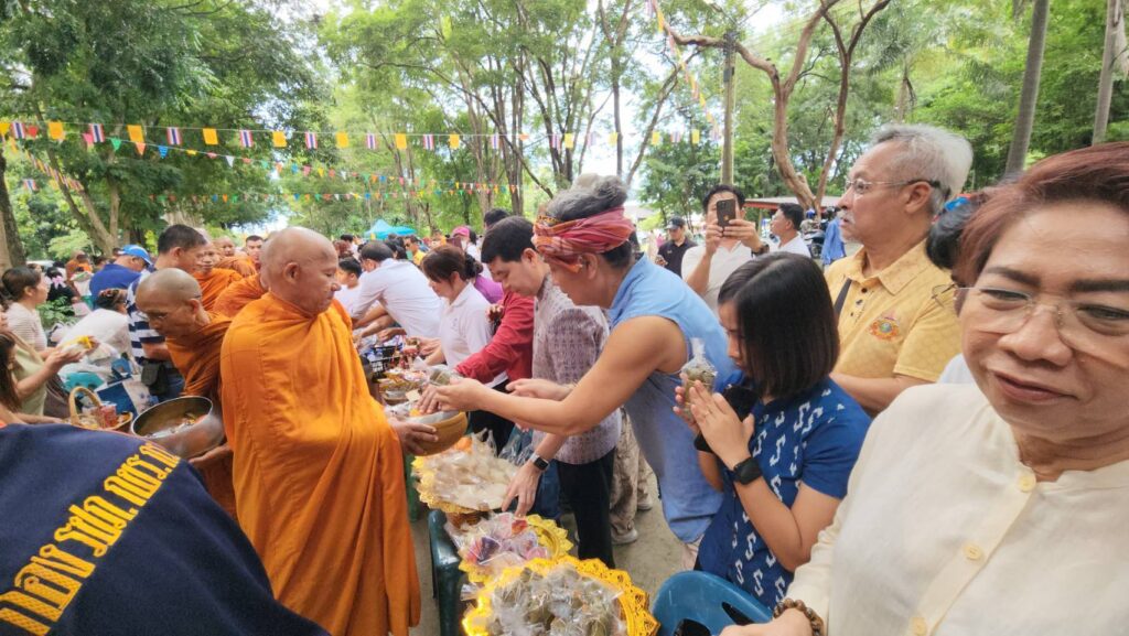 เมื่อเวลา 08.00 น. วันที่ 18 ต.ค.67 ที่วัดคีรีภาวนาราม ต.พลา อ.บ้านฉาง จ.ระยอง ผู้สื่อข่าวรายงานว่า ชมรมบ้านฉางท่องเที่ยวศิลปะและสิ่งแวดล้อม ได้ร่วมกับคณะกรรมการวัดคีรีภาวนาราม และประชาชนชาว อ.บ้านฉาง ได้จัดงานทำบุญตักบาตรเทโวโรหณะ เนื่องในเทศกาลวันออกพรรษา ประจำปี 2567 ขึ้น โดยมีนายกิติพงศ์ อุระวัตร นอภ.บ้านฉาง นางศุภร จุลทอง ประธานกลุ่มวิสาหกิจชุมชนริช 865 นายสุมิตร โสภาศรีพันธ์ ประธานชมรมบ้านฉางท่องเที่ยวฯ และนายภูวิรณ์ เลิศวีระศิริกุล ผู้จัดการทั่วไปศูนย์การค้าโรบินสัน ไลฟ์สไตล์ บ้านฉาง ร่วมทำบุญใส่บาตรพระสงฆ์ โดยทางวัดได้ให้พุทธศาสนิกชนในพื้นที่ ได้ร่วมทำบุญใส่บาตรพระภิกษุสงฆ์เพื่อความเป็นสิริมงคล โดยมีพระครูโกศลศาสนกิจวิธาน เจ้าคณะอำเภอบ้านฉาง และพระครูปัญญาศุภสิทธิ์ เจ้าอาวาสวัดคีรีภาวนาราม นำพระภิกษุสงฆ์ สามเณร จำนวน 40 รูป นำหน้าโดยเหล่าเทวดา และนางฟ้า เดินลงจากบนเขาโกรกตะแบกมาตามบันไดเป็นภาพที่สวยงามอย่างยิ่ง ก่อนที่พุทธศาสนิกชนจำนวนมากที่ตั้งแถวรออยู่ด้านล่างยาวกว่า 1 กม. จะได้ร่วมกันใส่บาตร