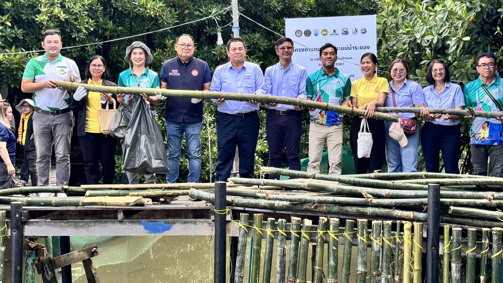 โรงไฟฟ้าบีแอลซีพี จับมือกลุ่มประมงเรือเล็กเก้ายอด จัดทำโครงการ ‘แนวกันขยะแม่น้ำระยอง’ โดยนำไม้ไผ่ปักตามแนวสะพานทางเดินแม่น้ำระยอง ป้องกันขยะลอยเข้าติดป่าชายเลน