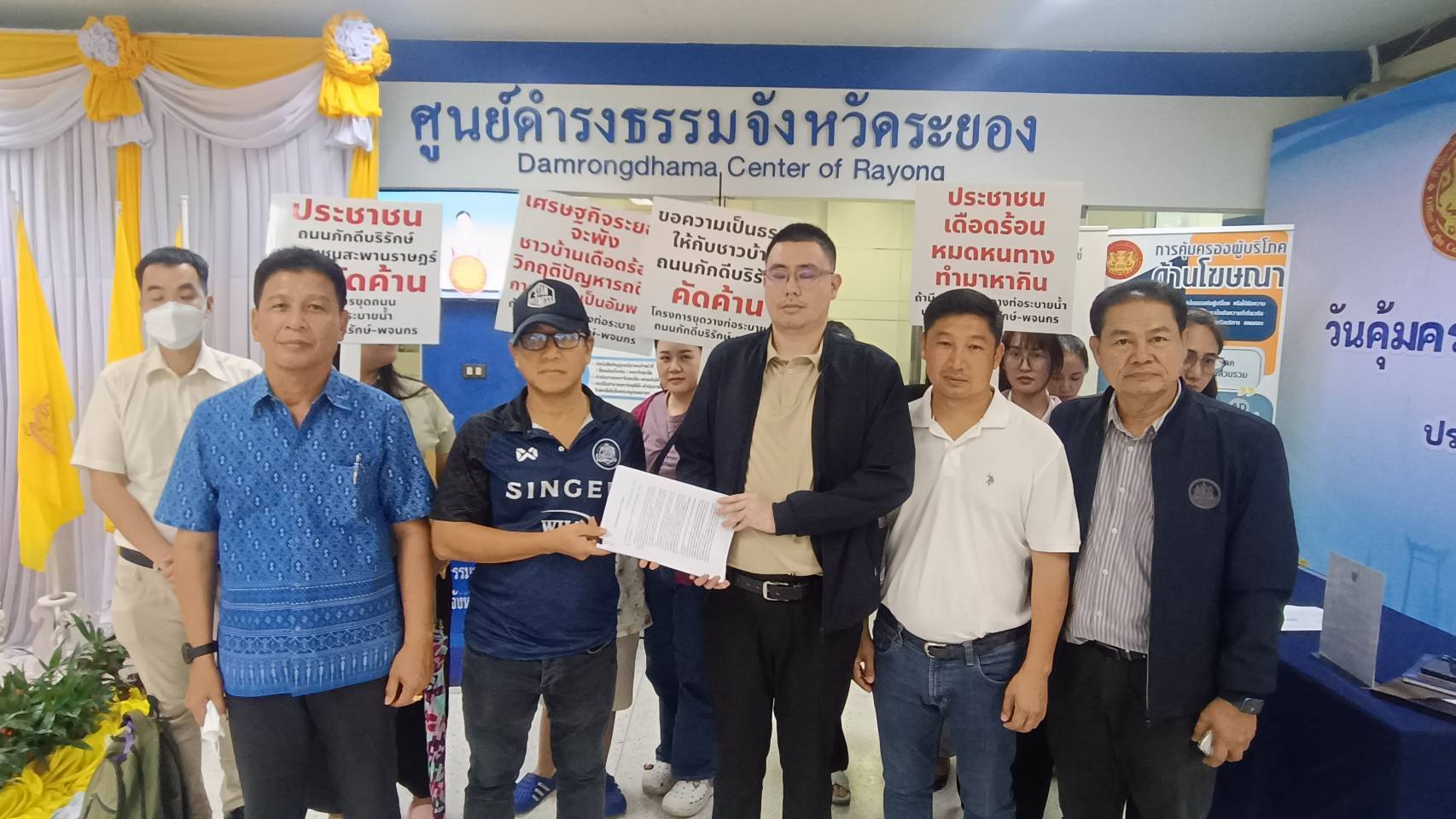 เมื่อเวลา 13.00 น.วันที่ 14 พ.ค.68 ผู้สื่อข่าวรายงานว่า มีตัวแทนชาวบ้าน และผู้ประกอบการภายในซอยภักดีบริรักษ์ไปจนถึงถนนพจนกร เทศบาลนครระยอง อ.เมืองระยอง ยื่นหนังสือศูนย์ดำรงธรรมระยอง ศาลากลางจังหวัดระยอง โดยมีการชูป้ายคัดคานการก่อสร้างโครงการวางท่อระบายน้ำขนาดใหญ่ผ่านเส้นทางดังกล่าวด้วย โดยให้เหตุผลว่าจะส่งผลกระทบกับชาวบ้านและผู้ประกอบการ รวมไปถึงผู้ที่จะต้องใช้เส้นทางดังกล่าวสัญจรไปมา ซึ่งปกติการจราจรบนถนนเส้นนี้ก็มีปริมาณรถมากอยู่แล้วเนื่องจากเป็นถนนสายเศรษฐกิจของจังหวัด เชื่อมต่อกับตลาดเก่ายมจินดา และสวนศรีเมือง เบื้องต้นทางศูนย์ดำรงธรรมจังหวัด ได้ให้โยธาธิการและผังเมืองระยอง และทางเทศบาลนครระยอง ร่วมรับหนังสือร้องเรียนจากชาวบ้าน