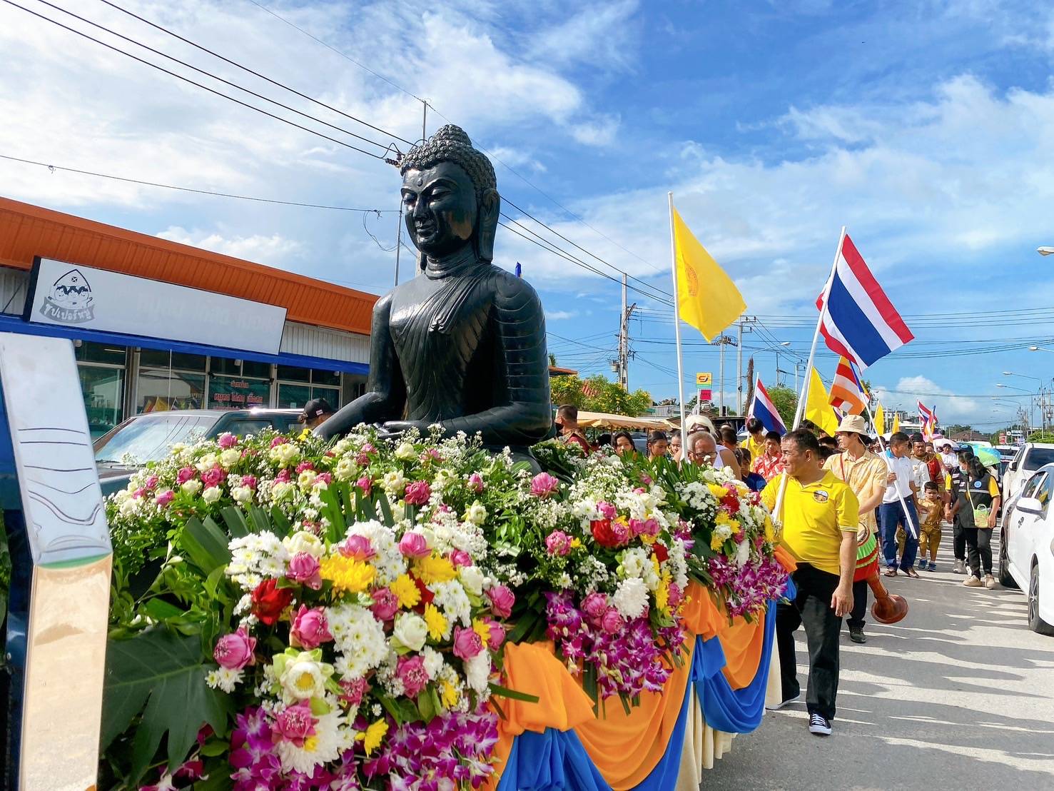 ชาวตำบลทับมา อ.เมืองระยอง แห่หลวงพ่อองค์ดำอัญเชิญจากอินเดีย ประดิษฐานไว้วัดเขาโบสถ์ ให้ประชาชนกราบไหว้ขอพร เพื่อความเป็นสิริมงคล