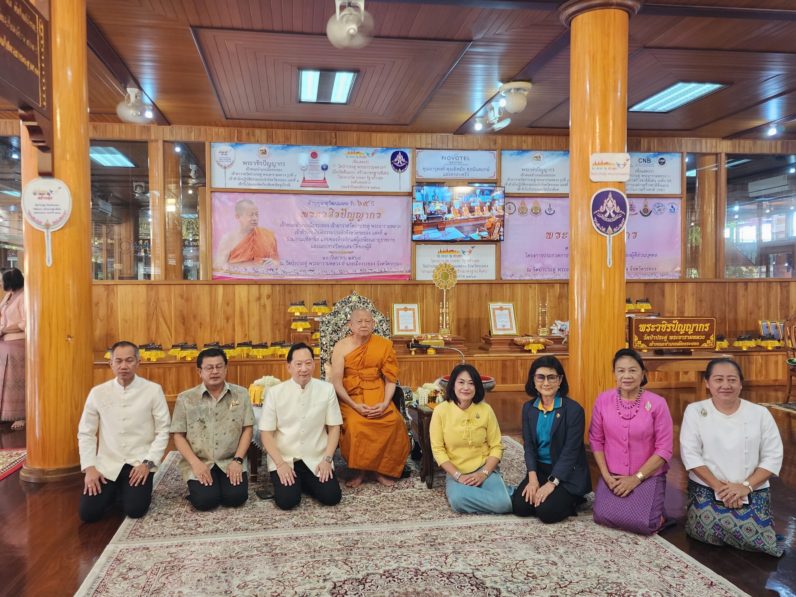 ศิษยานุศิษย์แห่ทำบุญฉลองอายุวัฒนมงคลพระวชิรปัญญากร เจ้าคณะอำเภอเมืองระยอง เจ้าอาวาสวัดป่าประดู่ ครบ 69 ปี แน่นวัด