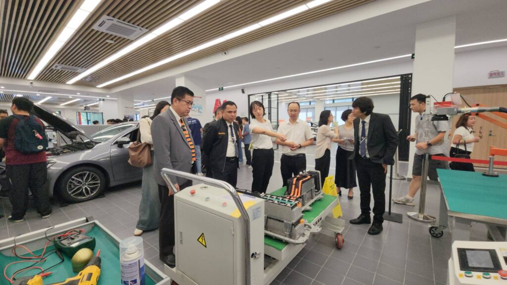 เมื่อเวลา 09.00 น. วันที่ 15 ก.ย.68 ผู้สื่อข่าวรายงานว่า นายกิตติพงค์ อุตตมะเวทิน ผอ.วิทยาลัยเทคนิคระยอง นายวีระชัย สมบัติกำไร ผอ.วิทยาลัยเทคนิคนิคมอุตสาหกรรมระยอง พร้อมด้วย ดร.ชรินทร์ ชูชื่น นางณัฐธารีย์ สิริกุลปัญญาพร และนายชาคริต รุ่งรัตน์ รอง ผอ.วิทยาลัยเทคนิคระยอง นำครูเดินทางไปที่วิทยาลัยอาชีวและเทคนิคไถโจว สาธารณรัฐประชาชนจีน เยี่ยมชมการจัดการเรียนการสอน และนิเทศนักเรียน นักศึกษาแผนกสาขาวิชาเมคคาทรอนิกส์และหุ่นยนต์ ปวส.1 ของวิทยาลัยเทคนิคระยอง จำนวน 17 คน หบังเดินทางไปศึกษาเล่าเรียนที่วิทยาลัยฯ ไถโจวแห่งนี้ โดยมีผู้บริหาร ครูวิทยาลัยอาชีวและเทคนิคไถโจว ให้การต้อนรับ พร้อมพาเยี่ยมชมฯ และลงนาม MOU ในรูปแบบการจัดการเรียนการสอนระบบทวิวุฒิไทย-จีน ร่วมกันในระยะยาวด้วย นอกจากนี้ยังได้พาผู้ปกครอง เดินทางไปดูความเป็นอยู่ของบุตรหลานที่ศึกษาเล่าเรียนอยู่ที่วิทยาลัยแห่งนี้อีกด้วย