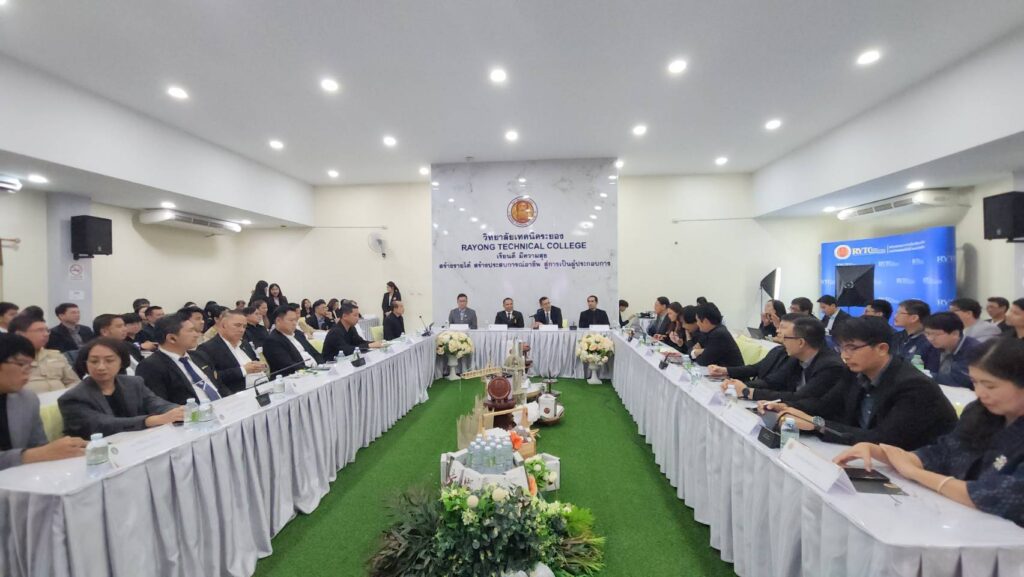 นายกิตติพงค์ อุตตมะเวทิน ผอ.วิทยาลัยเทคนิคระยอง เปิดเผยว่า การประชุมสร้างเครือข่ายและพัฒนาหลักสูตรร่วมเพื่อผลิตบัณฑิตสมรรถนะสูงสำหรับอุตสาหกรรมเป้าหมายแห่งอนาคตNew S-Cuve ดังกล่าว ถือเป็นแนวทางที่สำคัญอย่างยิ่งในการยกระดับคุณภาพการจัดการศึกษาให้ตอบสนองต่อความต้องการของภาคอุตสาหกรรมและสอดคล้องกับการพัฒนาประเทศในยุคเศรษฐกิจใหม่ การที่วิทยาลัยเทคนิคระยอง ได้รับเกียรติเป็นเจ้าภาพร่วมประชุมครั้งนี้