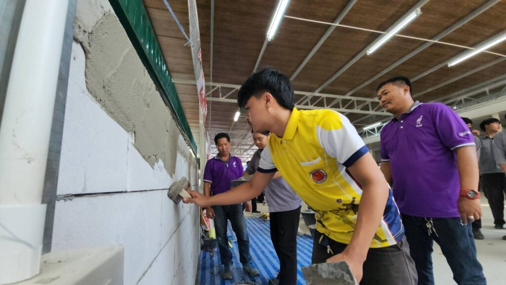 เมื่อเวลา 09.00 น.วันที่ 19 ม.ค.67 ที่วิทยาลัยเทคนิคระยอง ต.ท่าประดู่ อ.เมือง จ.ระยอง นายกิตติพงค์ อุตตมะเวทิน ผอ.เทคนิคระยอง เป็นประธานเปิดการอบรมเชิงปฏิบัติการทักษะงานก่อสร้างพื้นฐาน ตามมาตรฐานปูนลูกดิ่งแก่ นศ.ระดับ ปวส.วิชาช่างก่อสร้าง โดยร่วมมือกับผู้ผลิตปูนก่อสร้างลูกดิ่ง และปูนจิงโจ้ โดยนางนุช ยิ่งไพบูลย์ ที่ปรึกษาประสานสัมพันธ์องค์กรและลูกค้าสัมพันธ์ปูนลูกดิ่ง มีการบรรยายให้ความรู้เกี่ยวกับงานก่อ-ฉาบ และสกิมโค้ท ตามมาตรฐานปูน ก่อนจะให้ นศ.ลงมือปฏิบัติจริงด้วยการฉาบปูนก่อสร้างโรงอาหารของวิทยาลัยที่อยู่ระหว่างการก่อสร้าง เพื่อเป็นผลงานของ นศ.ซะเลย ทั้งนี้การอบรมดังกล่าว มีวัตถุประสงค์เพื่อให้ นศ.มีความรู้ความสามารถในทักษะด้านงานก่อสร้างเบื้องต้น สามารถนำไปใช้ในการทำงานและนำไปประกอบอาชีพเพื่อสร้างรายได้เสริมให้ตัวเองและครอบครัวได้