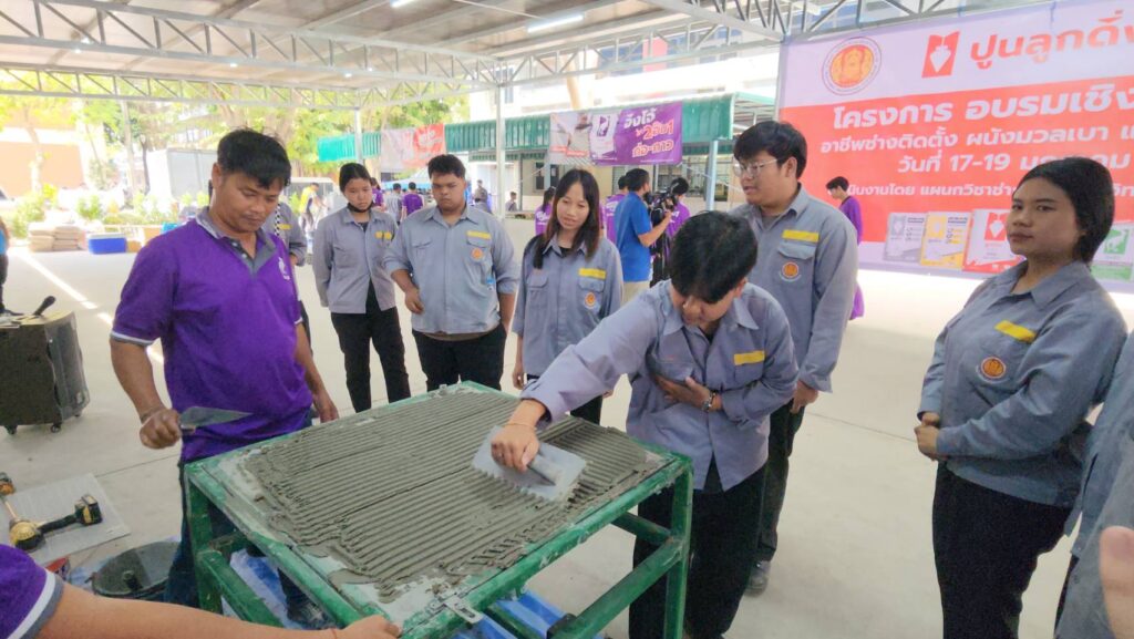นางนุช ยิ่งไพบูลย์ ที่ปรึกษาประสานสัมพันธ์องค์กรและลูกค้าสัมพันธ์ปูนลูกดิ่ง กล่าวว่า ความร่วมมือทางบริษัทที่เกิดขึ้นดังกล่าว ทางบริษัทฯ มุ่งเห็นความสำคัญของการศึกษาของ นศ. จึงได้ร่วมมือกับเทคนิคระยองดังกล่าวขึ้น โดยนำผู้เชี่ยวชาญด้านการก่อสร้างนวัตกรรมใหม่ๆ มาเติมเต็มให้กับ นศ. โดยเน้นให้ นศ. ได้ลงมือปฏิบัติและทำจริง ทั้งก่อ-ฉาบ และสกิมโค้ทกระเบื้องตามมาตรฐาน เพื่อให้นำไปใช้ในงานจริงในอนาคตต่อไป